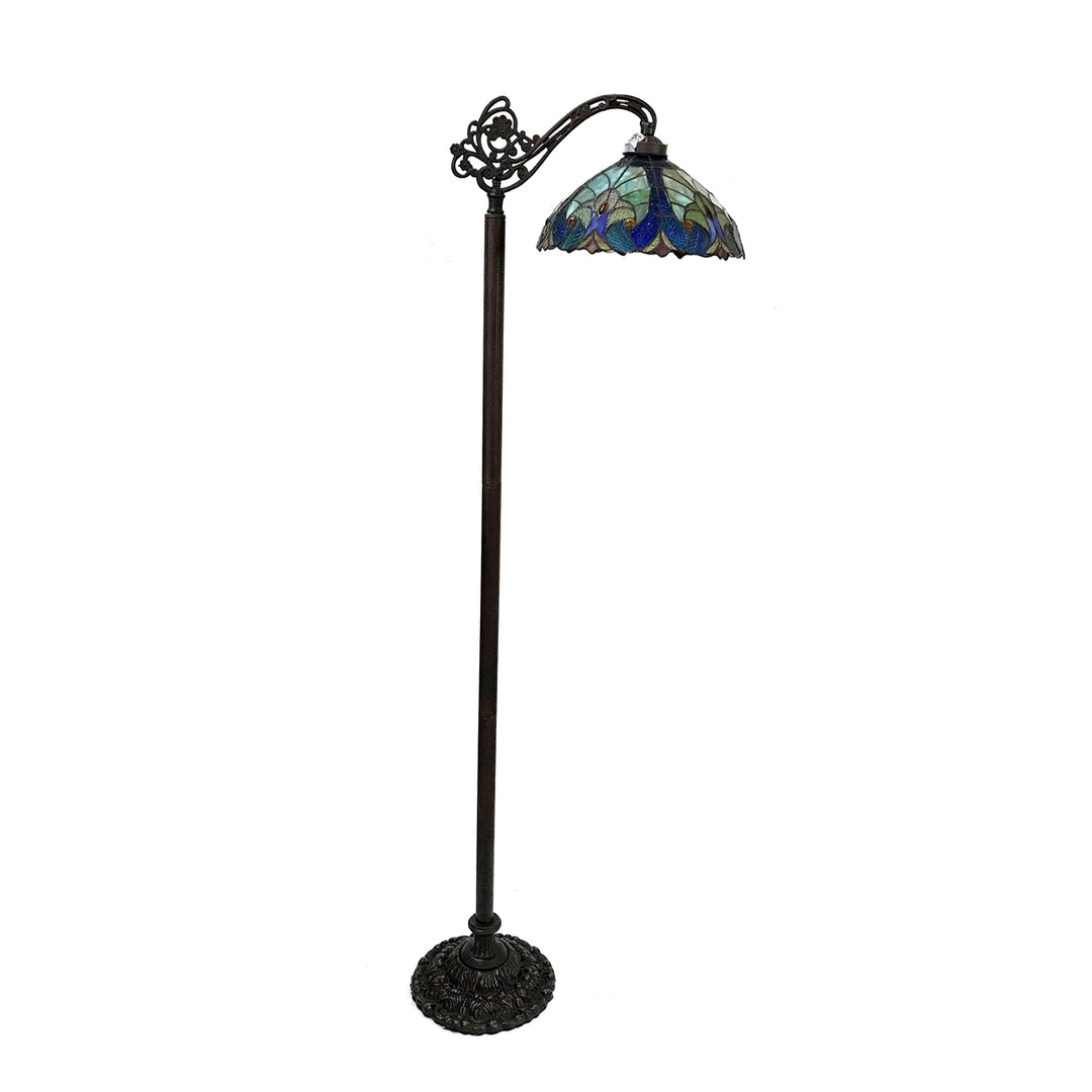 This Tiffany-style 1-light floor lamp features a dark antique bronze finish that will complement many decors throughout your home. Handcrafted from over 220 pieces of art glass and 15 beads that will add color and beauty to any space. Main colors are green and blue. Handcrafted using the same techniques that were developed by Louis Comfort Tiffany in the early 1900s, this beautiful Tiffany-style piece contains hand-cut pieces of stained glass, each wrapped in fine copper foil.