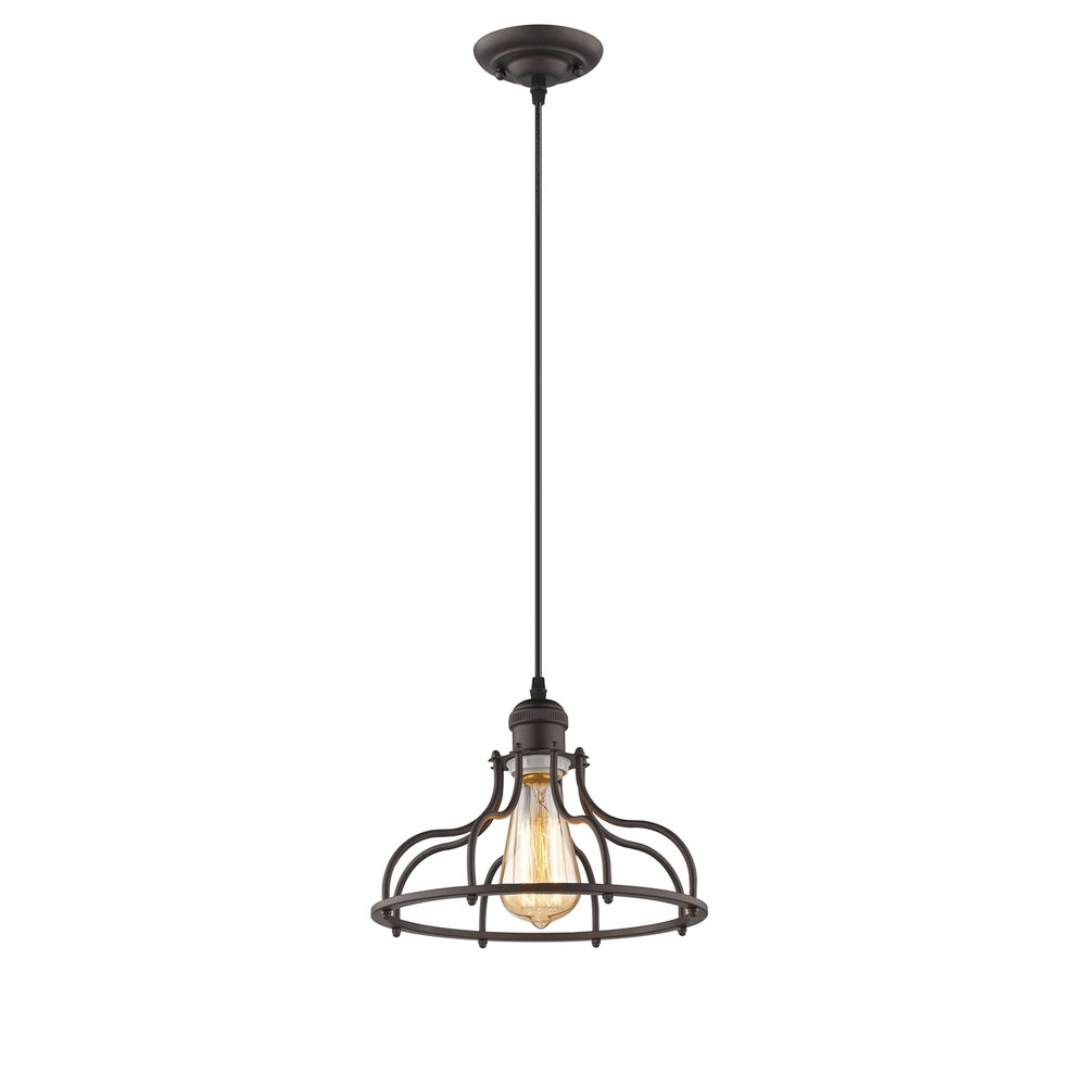 This 1-light pendant features an oil rubbed bronze finish that will complement many transitional decors. The clean lines of the steel frame and matching metal shade softens the light to create a warm ambiance for any space.