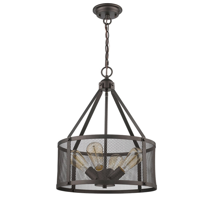 This 4-light pendant features an oil rubbed bronze finish that will complement many industrial and transitional decors. The clean lines of the steel frame add interest, while the wire mesh surrounding the bulb provides a unique light to any space.