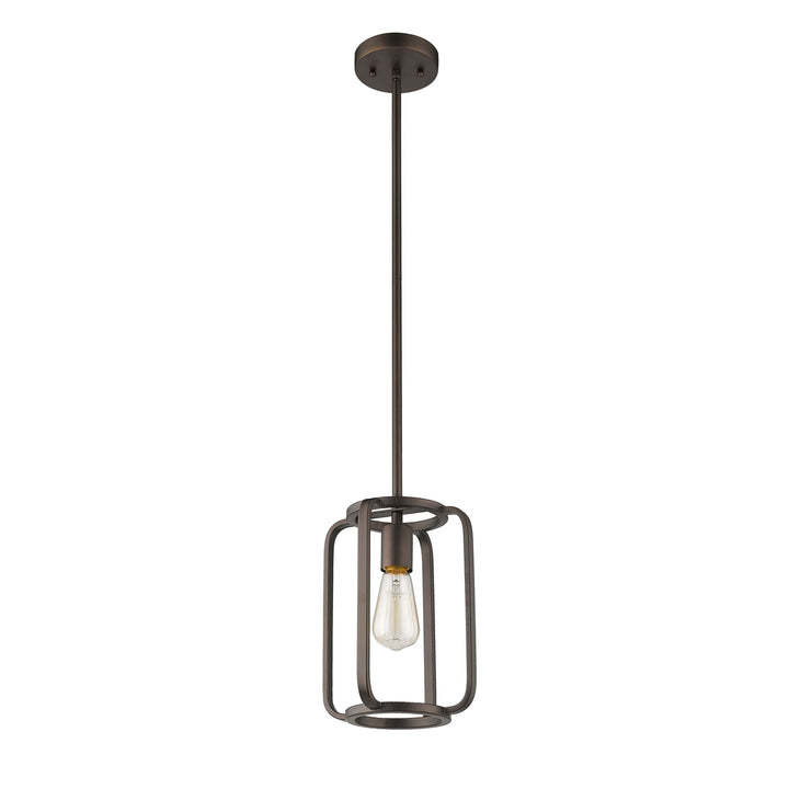 IRONCLAD, an Industrial style 1 light pendant features a very modernized look with an oil rubbed bronze finish. The clean lines of the rectangular shaped steel add interest and uninterrupted light for your other decor.