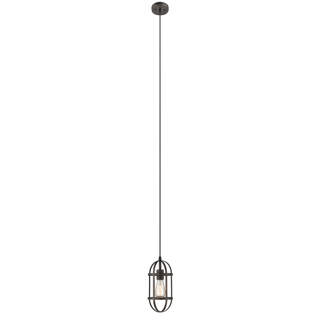 IRONCLAD, an Industrial style 1 light mini pendant, features an oil rubbed bronze finish that will complement many loft, urban, industrial, and transitional decors. The metal frame for the bulb adds interest and ample light to any room.