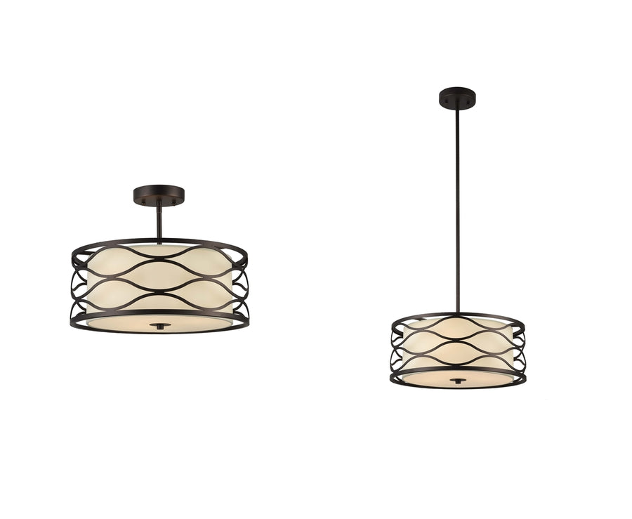 GWEN, this transitional 3-light semi-flush mount fixture features oil rubbed bronze finish that will complement many transitional, loft and urban decors.