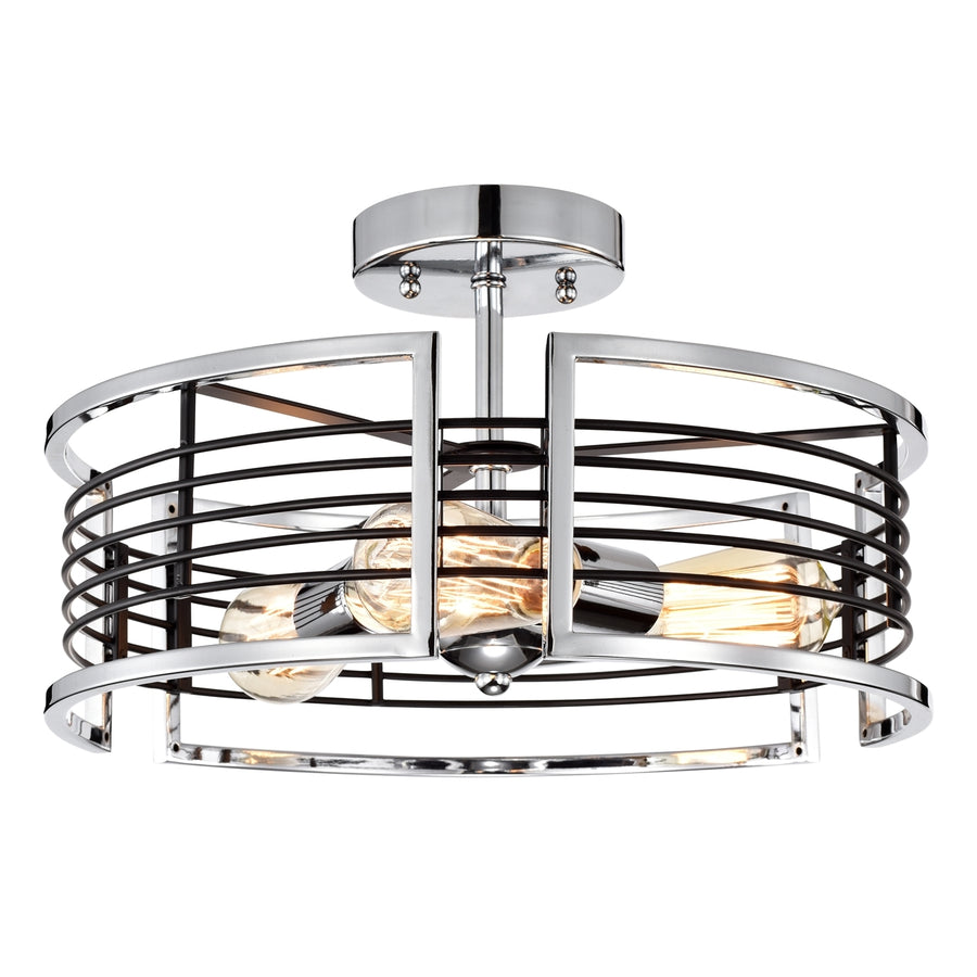 Roderick, an Industrial 3-light semi flush mount light, features a chrome finish that will complement many contemporary and modern decors. This piece would look great in the dining room, hallway, and foyer. This fixture takes three 100W E26 bulbs and is compatible with fluorescent, incandescent, and LED bulbs. This fixture is dry listed and UL listed, also recommended for an indoor setting.