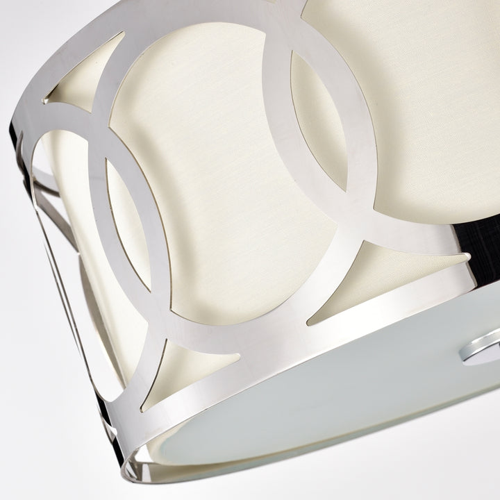 Bronx, a Transitional 2-light semi flush mount light, features frosted glass and a chrome finish that will complement many contemporary and modern decors. This piece would look great in the dining room, hallway, and foyer. This fixture takes two 100W E26 bulbs and is compatible with flourescent, incandescent, and LED bulbs. This fixture is dry listed and UL listed, also recommended for an indoor setting.