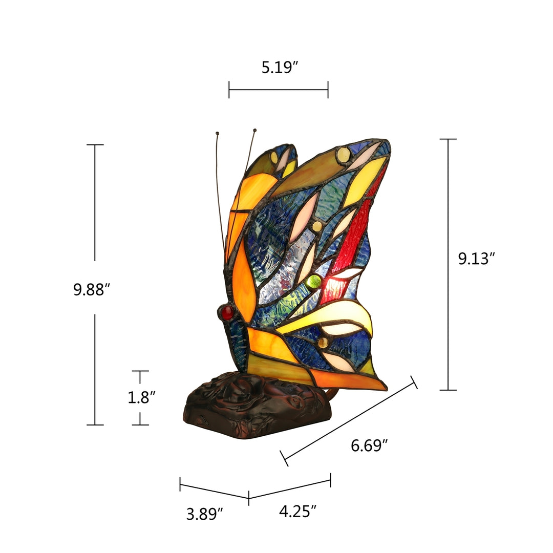 CHLOE Lighting JACY 7 Tiffany-style 1 Light Antique Dark Bronze Finish Butterfly Accent Table Lamp 10" Tall